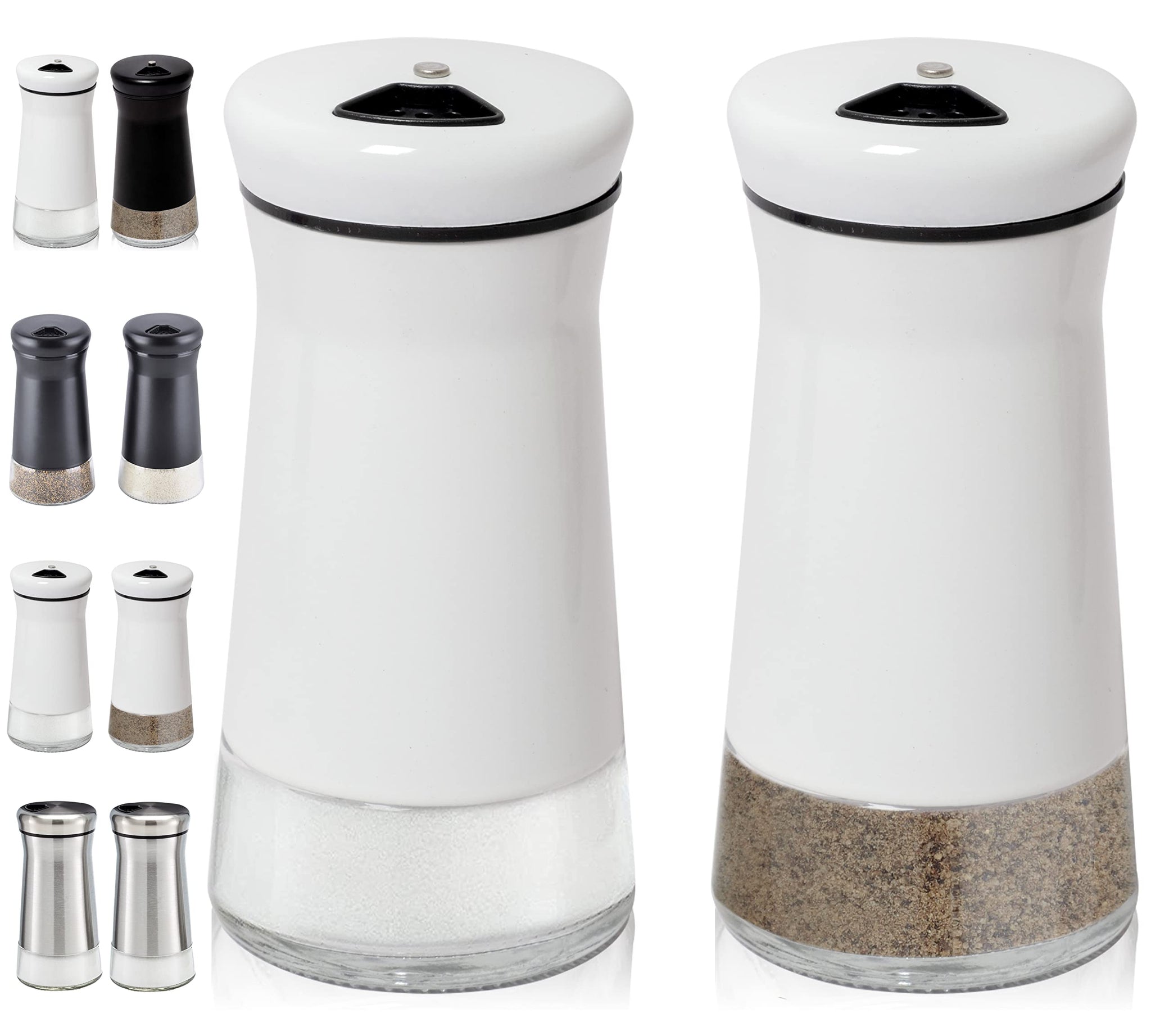 Lifetime Warranty: Made to last a lifetime with high quality stainless steel & glass: Our salt shakers & pepper shakers are inspected & tested for quality. If your set is not perfect, we will make it right for you, no hassle!