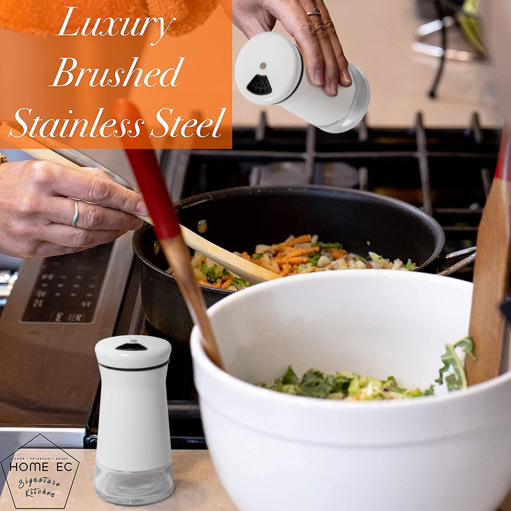 Easy to clean high quality glass and stainless steel shaker set: This salt and pepper shaker set features a modern design. Fill with your favorite spice, Himalayan, kosher, or sea salts. Perfect Farmhouse Shaker, cinnamon shaker or sugar dispenser.
